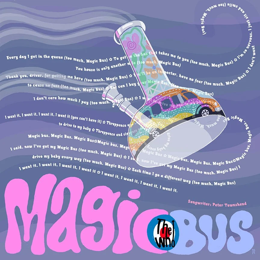 80. “Magic Bus” is a song by The Who that was written by Peter Townshend and Dennis Blandfor. The song is about a guy that wants to buy a bus to get to his girlfried. The song might have been inspired by the school bus purchased by author Ken Kesey, who with his friends, The Merry Band of Pranksters, used for their exploits and highlighted in Tom Wolfe’s book The Electric Kool-Aid Acid Test. The bus took its’ final trip to the Woodstock in 1969 where The Who were a featured band.