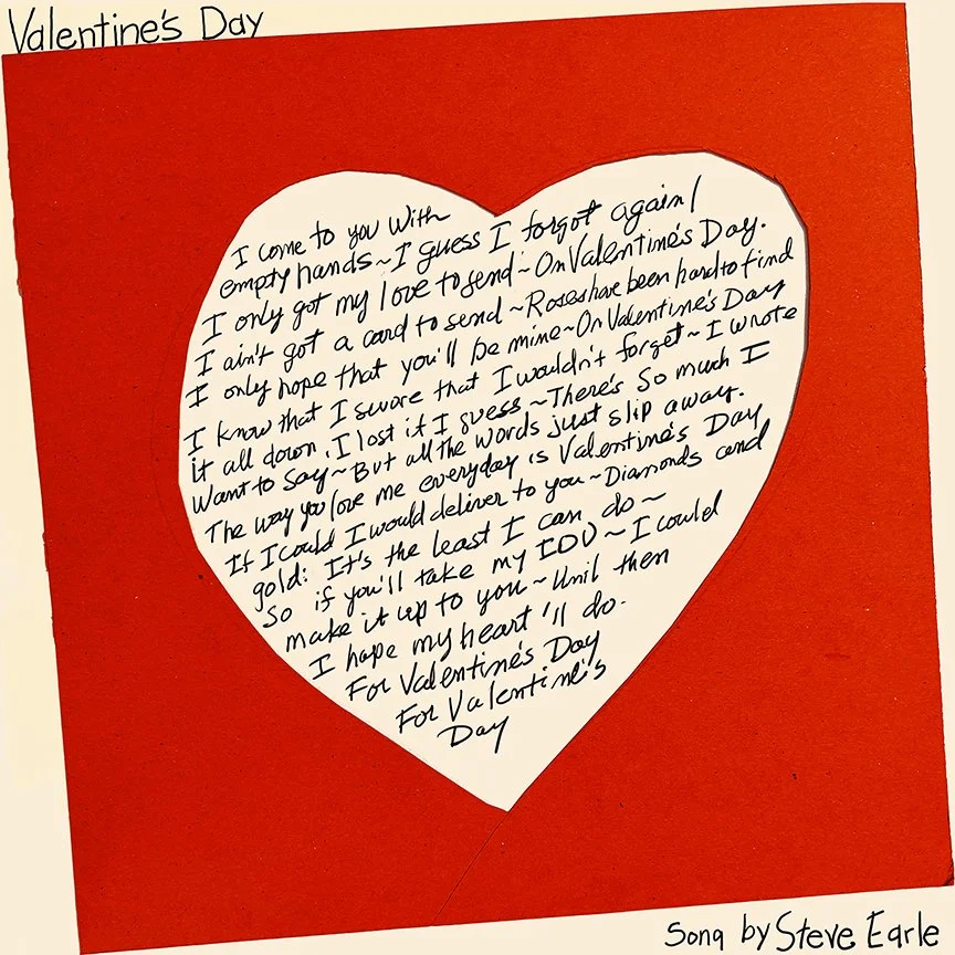 158. “Valentine’s Day” is a song by Steve Earle. It is written from the perspective of someone who forgot Valentine’s Day. “I come to you with empty hands / I guess I just forgot again / I only got my love to send / On Valentine's Day.”